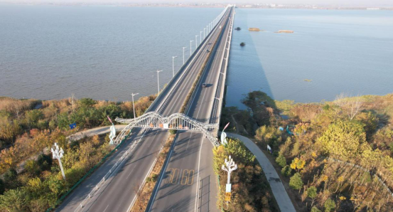 跨湖大桥添景致,水光潋滟白鹭飞