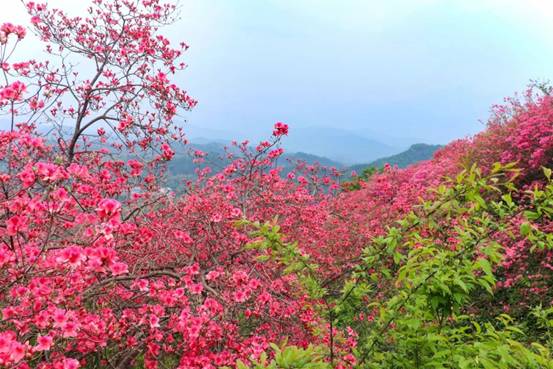 这是一条编织着自然画卷的风景路,诉说神奇魅力,传承人文底蕴。S447省道,作为享有“华东最美自驾游路线”盛名的中国红岭公路的组成部分,以生态旅游的魅力吸引着游客们踏上马鬃岭的奇幻旅程。四月,马鬃岭上的映山红如火如荼,灿若云霞,热烈绽放于青山绿水间,绚丽多姿。曲径通幽处,它们竞相辉映,满山皆是红火的色彩。登顶远望,高山峡谷、流泉飞瀑与杜鹃花相映生辉,美不胜收,宛如仙境般令人陶醉其中。