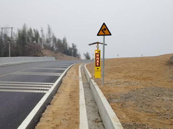 金寨县以山区道路为主,存在坡陡弯急、视距受限等因素, 为预防和减少国省干线急弯道路交通事故的发生,保障群众出行安全,金寨县交通局在S245新斑路K305+580段增设2处弯道会车预警系统,为驾驶安全提供了有力的保障。
