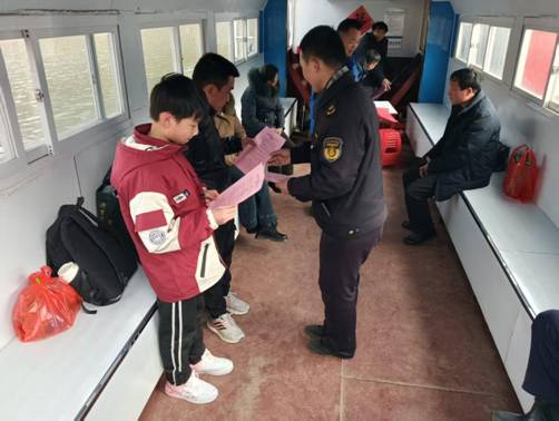 千叮万嘱话安全。执法人员深入渡口、渡船一线,现场指导渡工和船员落实各项安全措施,确保渡运安全无虞。对《内河运输船舶重大事故隐患判定标准》进行详细解读,增强从业人员的安全责任意识,督促其严格遵守航行规则。开展“暖新春运@情满旅途”志愿服务活动,为乘客提供周到的咨询服务,耐心解答疑问,引导乘客有序上下船并正确穿戴救生衣,共同维护良好的渡运和通航秩序。积极科普“12395”水上遇险救助电话,提高船员和群众的应急求助能力。此外,组织开展模拟实操演练,现场检验船员和船舶的适任能力,有效提升了从业人员的应急处置水平,保障了辖区渡船适航、船员适任,守护了人民群众的出行安全。