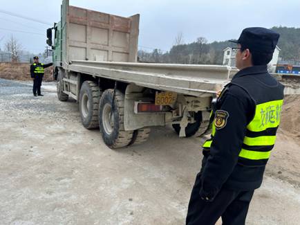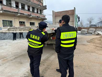2025 年3月5日6点40分左右,金寨县交通运输综合行政执法大队三中队全体队员于在吴家店镇飞机场村的十字路口开展治超专项突击整治行动时,一辆拉着大理石块的货车“轰隆隆”地朝着执法区域驶来。