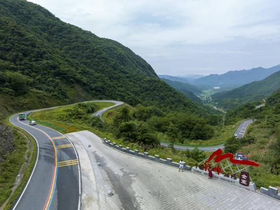 2024年,金寨县投入150万元实施绿化提升工程,坚持系统化布局,统筹道路绿化与人居环境整治、和美乡村建设;结合沿线地貌特征,科学配置香樟、红叶石楠等乡土树种;推行精细化管理,开展季度专项管护行动,通过补植修剪、土壤改良等措施,构建“车在景中行,路自绿中延”的美丽交通网络。X316南汤路作为省级美丽公路样板,也是全国特色旅游自驾风景道“中国红岭公路”绝美路段。“竹山花海随山势起伏,观景平台揽云霞入怀,古驿茶亭传文脉馨香,精品民宿嵌林泉之间”。这条“美丽经济走廊”建成通车后,促进了优质农副产品“走出去”,带动沿线金刚台村、泗道河村每户均年增收达4000元以上,实现了“一条大道、两路风景、三季有花、四季增收”的共赢格局。