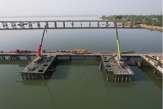 各标段严格落实各项安全制度,强化质量标准,足额配员并合理安排时间抢抓工期,全力推进项目建设。截至目前,监理单位、中试单位、施工单位、劳务队伍等已全部进场,人员、材料、机械配备充足,项目6处先行开工点已全面启动。该项目重点节点工程城东湖、城西湖特大桥钢便桥分别于月初合龙,为后续项目建设打通了“任督二脉”,为桥梁建设物资运输和机械调度贯通了“生命线”,同时标志着特大桥正式施工准备就绪。
