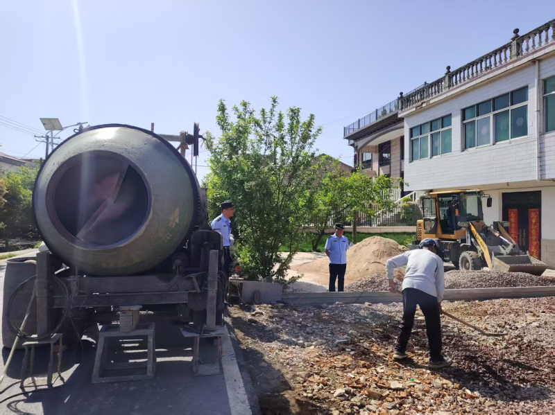 近日,舒城县交通执法大队五中队执法人员巡查至县道X445干秦路绕山段发现,村民祝某为自家门前硬化施工,占用县道公路及公路用地堆放机械物品,影响县道公路安全畅通。