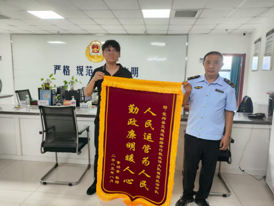 经过近2小时的法规宣讲和案例剖析,张某终于幡然醒悟,深有感触地说:“我不仅违法,更是在拿乘客的生命、自己的家当赌运气啊!从车况,保险来看,非法营运危险很大,风险是司乘人员都承受不起的。”该驾驶员主动配合调查,承认错误并保证今后严格遵守法律法规,绝不再犯。为表达对执法人员教育引导的感谢,他特意制作了一面锦旗送到城郊执法中队,用实际行动证明了自己“迷途知返”的决心,并承诺加入 “守法宣传员”队伍,向身边司机广泛宣讲非法营运的危害。