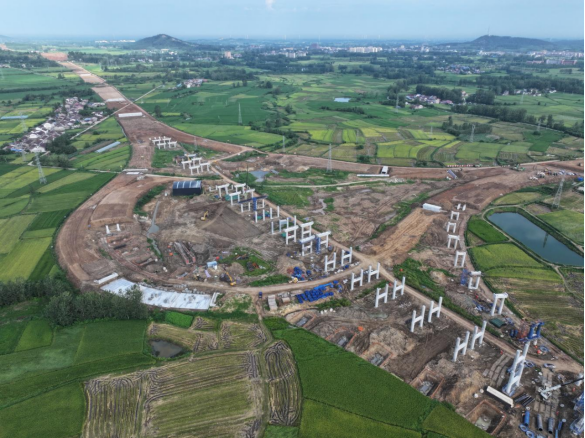截至8月27日,目前路基3标2分部日投入参建人员500余名,大型设备200余台套,正在有序开展盖梁和现浇箱梁施工。该标段主线桥桩基施工完成92%,墩柱施工完成81%,2025年度计划产值2.2亿元,现实际完成1.6亿元,完成率73.8%,预计将提前完成年度计划。