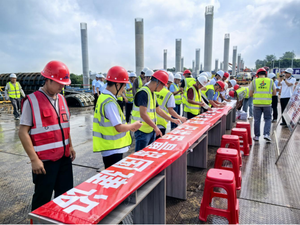 走进施工现场,“加强全面质量管理 促进质量强国建设”的红色标语格外醒目。该项目施工单位严格落实建设“百年品质工程”各项要求,建立完善“全员、全过程、全方位”的质量管理体系,从原材料进场到工序验收,每个环节都严格执行质量标准。“对于马店枢纽主线桥这样的关键工程,我们采用了更加严格的控制标准。”项目总工指着正在施工的桥墩说,“每个墩柱的垂直度误差控制在毫米级,混凝土浇筑实行全程监控,确保内实外美。”在钢筋加工厂,工人们正在操作数控设备进行精准下料。“我们采用了智能化加工技术,确保钢筋尺寸误差不超过1毫米,这样才能保证桥梁结构的精准度和安全性。”现场技术人员说道。项目部还开展了“质量标兵”评选、技能比武等活动,激发一线工人重视质量、创造精品的积极性。一位现场施工人员说,“现在大家干活都会互相提醒,不能因为自己的疏忽影响了整个工程的质量。”