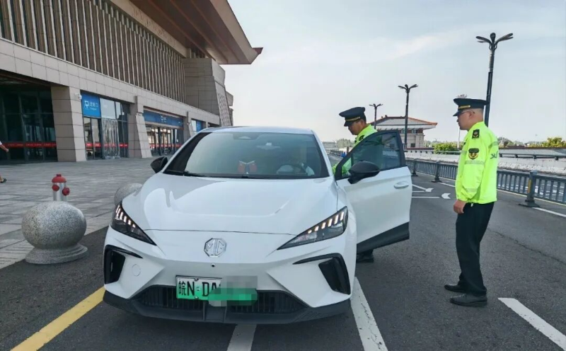 近日,舒城县交通执法大队一中队执法人员在舒城县高铁东站落客平台巡查发现,一辆绿皖NDA2XXX小型轿车正在高铁东站落客平台下客,执法人员上前出示执法证件表明身份后,对该车进行执法检查。