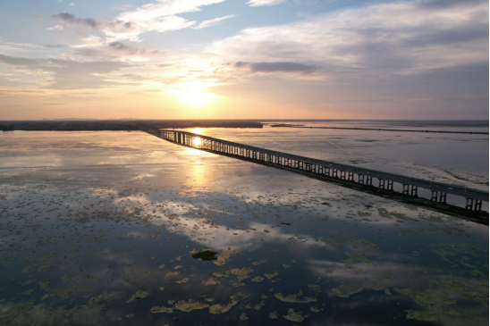 “大环线”引领,霍邱交通网络提质升级。在皖北交旅融合发展的宏伟蓝图中,“旅游大环线”作为核心骨干,全长约828公里,依托G328、S319、G329等多条公路,串联淮北、亳州、宿州、蚌埠、阜阳、淮南及滁州市明光、凤阳和六安市霍邱共28个县(市、区)。这一宏大的交通网络布局,联通皖北超80%的省级以上文旅品牌项目,实现了核心资源串珠成链,精彩环游,霍邱县正处于这一交通网络的重要节点。近年来,霍邱县加快推进交通基础设施建设,G328霍邱段一级公路改建工程作为重点项目之一,尤其是跨城东湖段近5公路与S20高速共用一桥,以双层桥梁的超高规划实施,不仅改善了区域交通条件也形成了人文景观,更成为促进交旅融合的重要纽带。