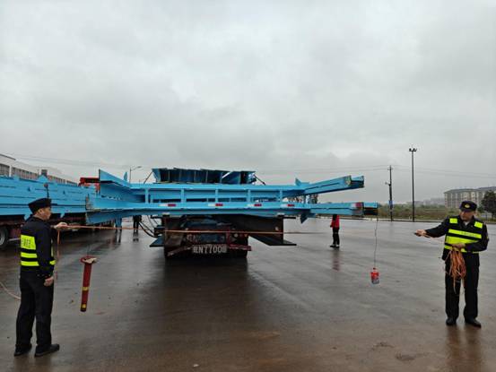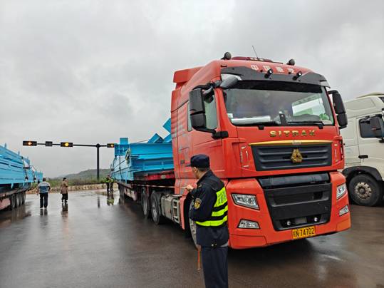 为民解忧“讲”速度。10月以来,县内天气阴雨不断,近日,县交通运输执法大队接到了来自鸿路建材科技有限公司的大件运输勘验工作任务后,为切实解决企业痛点难点卡点问题,着力做到“五个更好”,执法人员第一时间与企业进行联系,在急雨中赶赴企业,上门进行户外现场勘验。