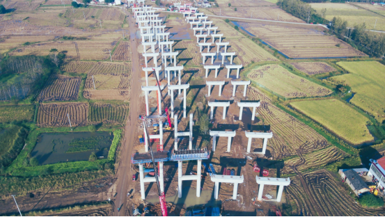 工程建设的高效推进是劳动竞赛成果最直观的体现。施工一线,两千余名建设者与数百台套机械设备昼夜不息,交织成一幅全力以赴抓进度的生动画面。劳动竞赛开展以来,各标段你追我赶,工程节点接连告破,形成了“比、学、赶、超”的浓厚氛围。基础工程作为先行环节,其进展尤为瞩目:全线桩基完成已近八成,墩柱施工过半,预制箱梁、路基及灰土填筑均按计划稳步推进,完成量均达到总体方案的相当比例。