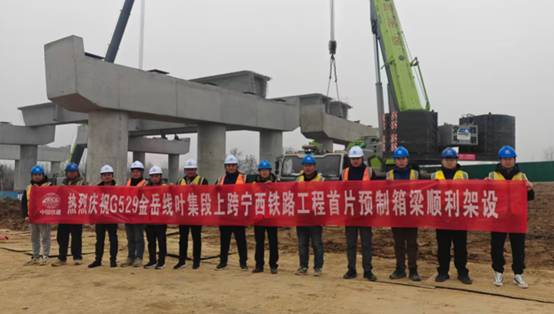G529金岳线叶集段上跨宁西铁路工程首片箱梁架设成功