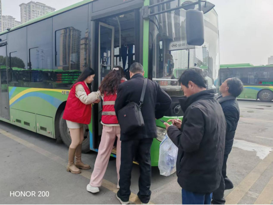 在便民服务一线,客运西站与惠民公交工作人员化身志愿先锋,在候车大厅设立党员先锋服务岗,配齐轮椅、急救箱、充电宝、爱心雨伞等便民物资,精准聚焦老年旅客群体,开通助老绿色通道,提供一对一帮扶接送等暖心服务。工作人员主动搀扶老人、搬运行李、讲解乘车流程,用细致周到的服务,让老年出行更安心、更便捷。工会驿站爱心补给站免费供应热水、姜茶与应急药品,为往来旅客、环卫工人送去春日温暖。