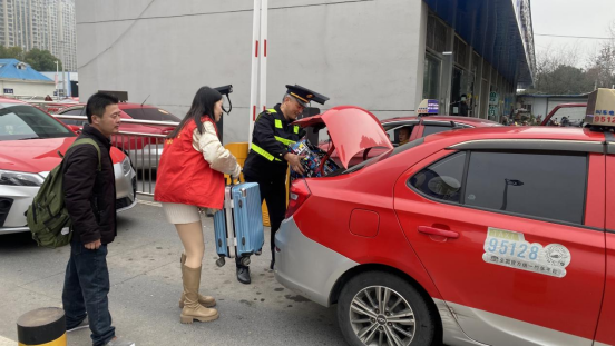 文明出行引导志愿服务同步开展,志愿者们分布在站前广场、进出站口、公交换乘区,引导旅客有序排队、文明候车,细致解答换乘疑问、发放文明出行与反诈宣传手册,规范站区乘车秩序,倡导安全文明出行理念,营造整洁有序的站区环境。