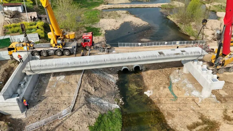 近日,随着龙潭河大桥最后一片预制箱梁精准落位,环万佛湖旅游扶贫公路连接线工程(一期-德上高速汤池连接线),顺利完成全线所有预制T梁、箱梁架设任务,为后续桥面系施工及全线贯通奠定坚实基础,一条群众期盼已久的致富路、民心路正加快从蓝图变为现实。该项目起点顺接环万佛湖旅游公路,途经三江村、胡畈村,跨越龙潭河、汤池河,止于留览村东北侧,与德上高速汤池互通A匝道及省道S237十字相交。路线全长5.668公里,按双向两车道二级公路标准建设,路基宽12米,设计时速60公里。全线设龙潭河大桥、汤池河中桥2座桥梁,共需架设预制梁60片,现已全部完成。施工期间,面对涉水作业、地质复杂、场地狭窄等困难,项目部科学统筹施工组织,多次开展技术研讨,优化架梁方案,精细推演运梁、架设及机械布设全过程。针对高空作业、吊装等高危环节,建立全链条管控体系:架梁前开展方案评审与设备验收,施工中落实全程旁站、封闭施工及交通管制,织密安全防护网,确保全过程安全有序。目前,项目已全面转入桥面系、路基精加工及路面工程施工攻坚阶段。