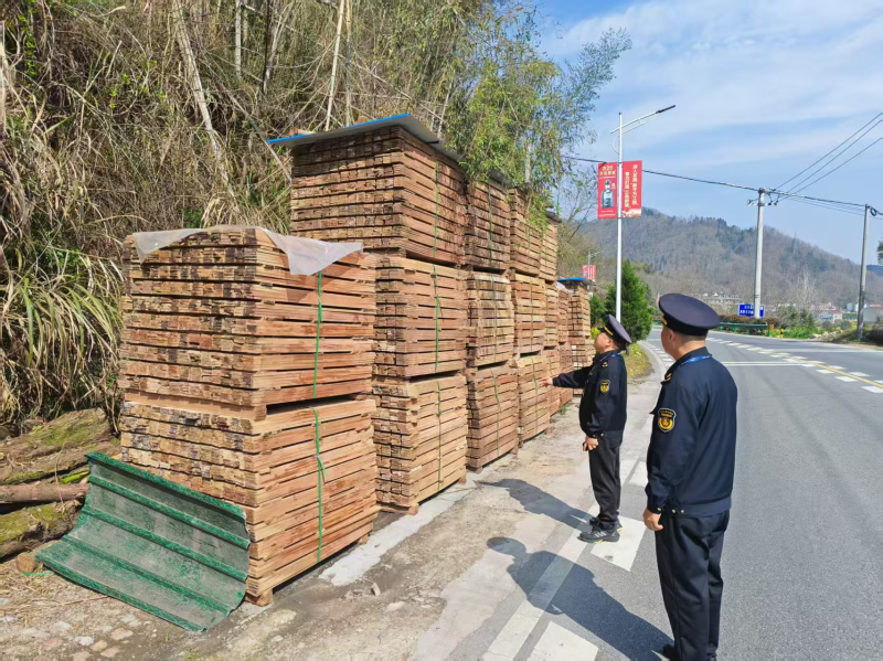 清明假期,舒城县交通执法大队加强茶旅交通要道公路执法巡查,全力维护茶谷旅游通道交通安全。日前,舒城县交通执法大队六中队巡查到G105国道1210K+400处,发现某木材加工经营者施某在105国道弯道处公路用地范围内堆放木材货物,遮挡车辆行人转弯视线,影响国道交通安全。